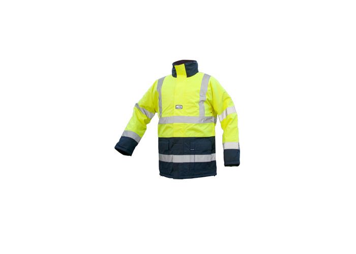 Parka Haute Visibilité jaune fluo et bleu marine.